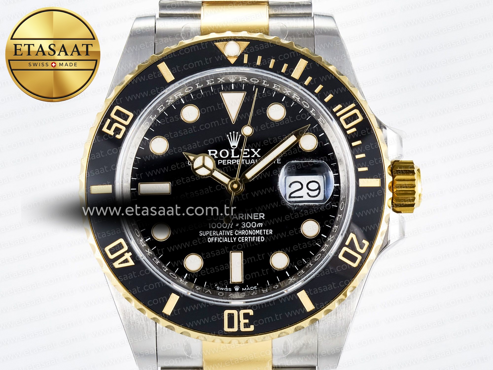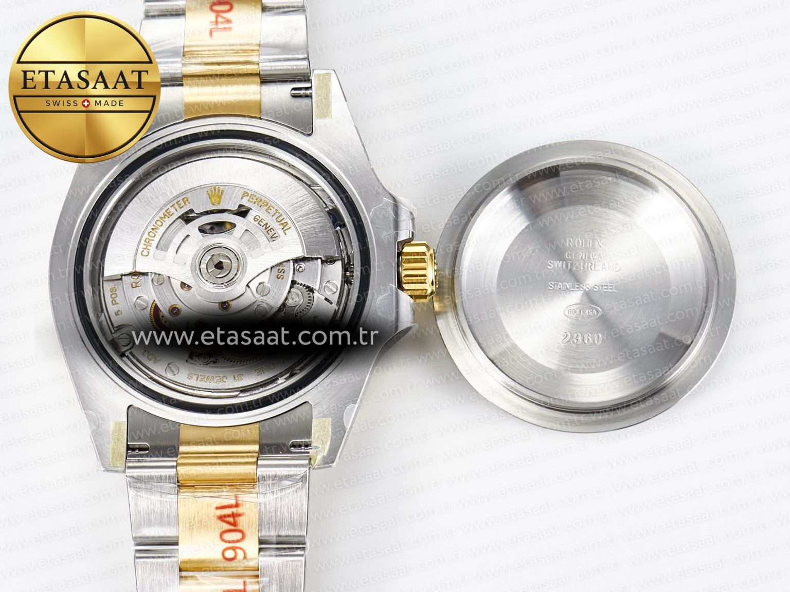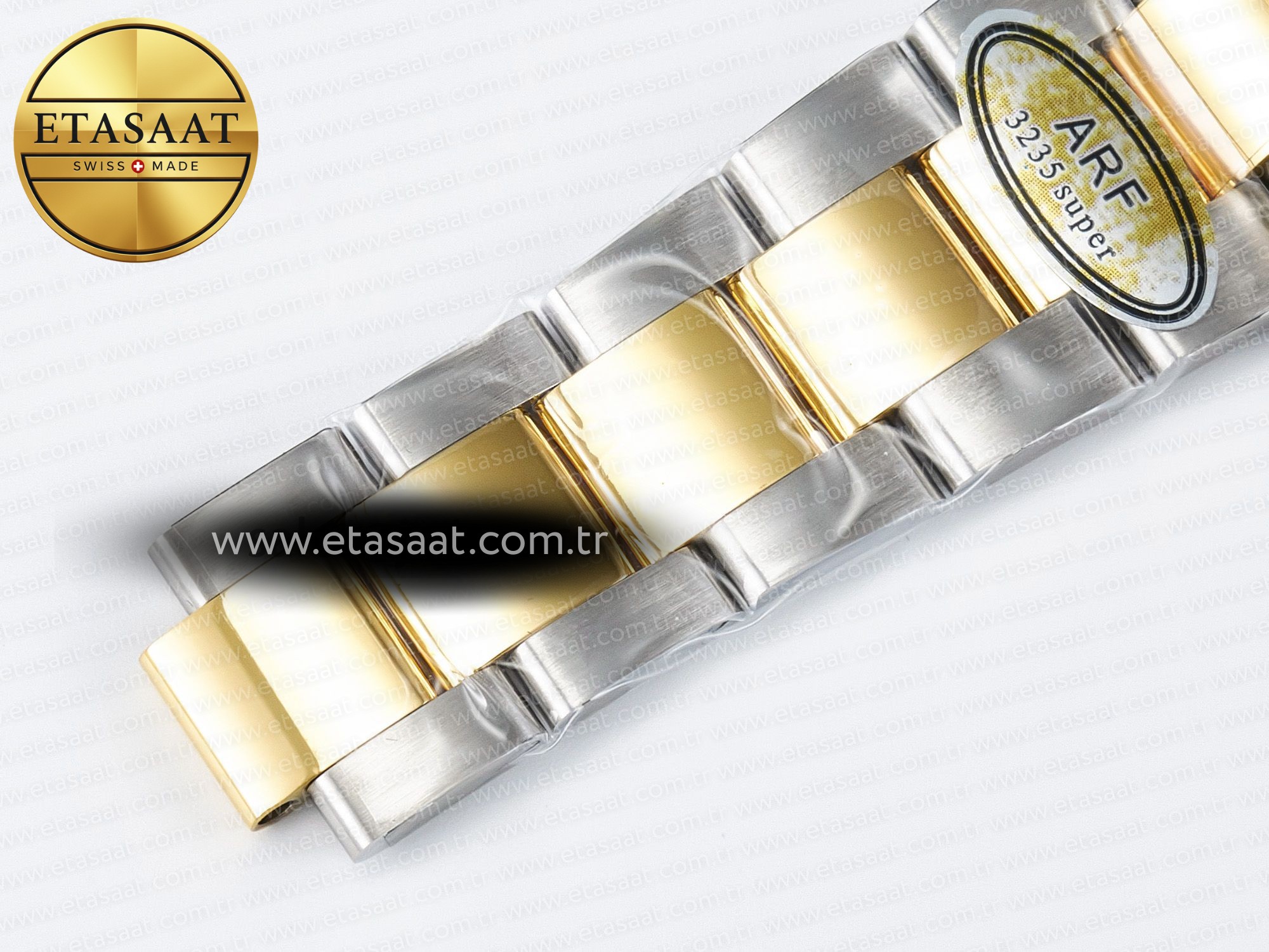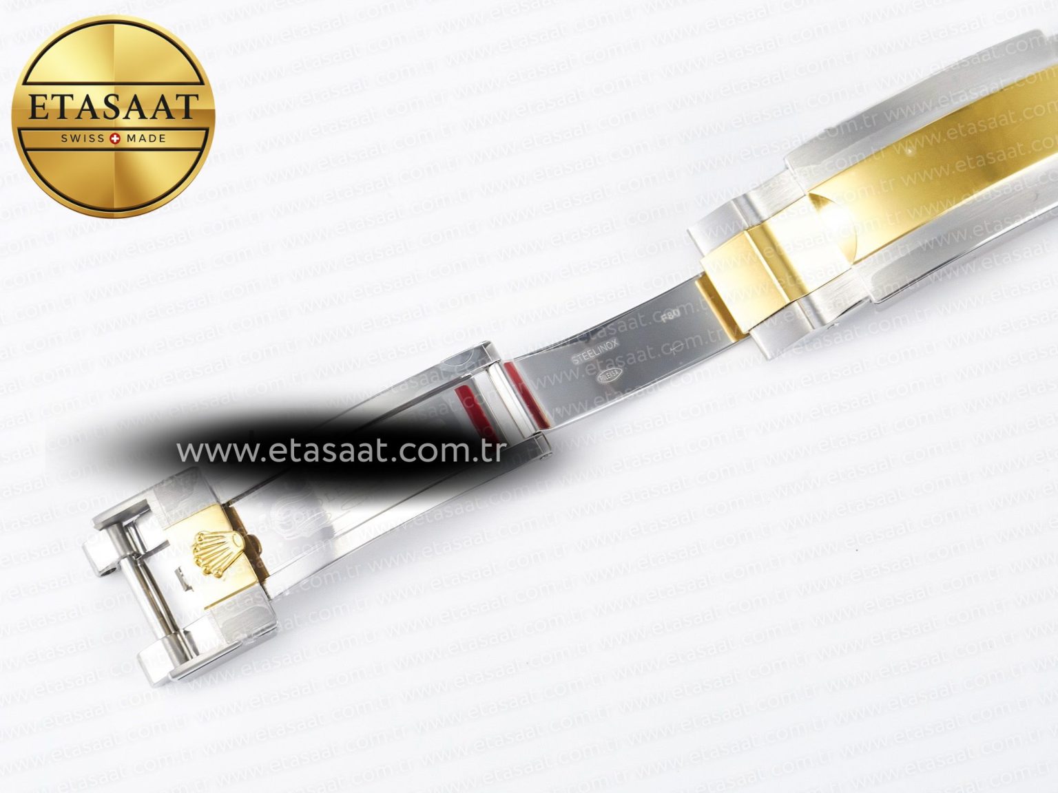 Strap: Solid 904L stainless steel bracelet, 18K yellow gold plated middle links, with perfect SEL, clasp and extension and smooth screws (The Best Rolex Bracelet EVER)