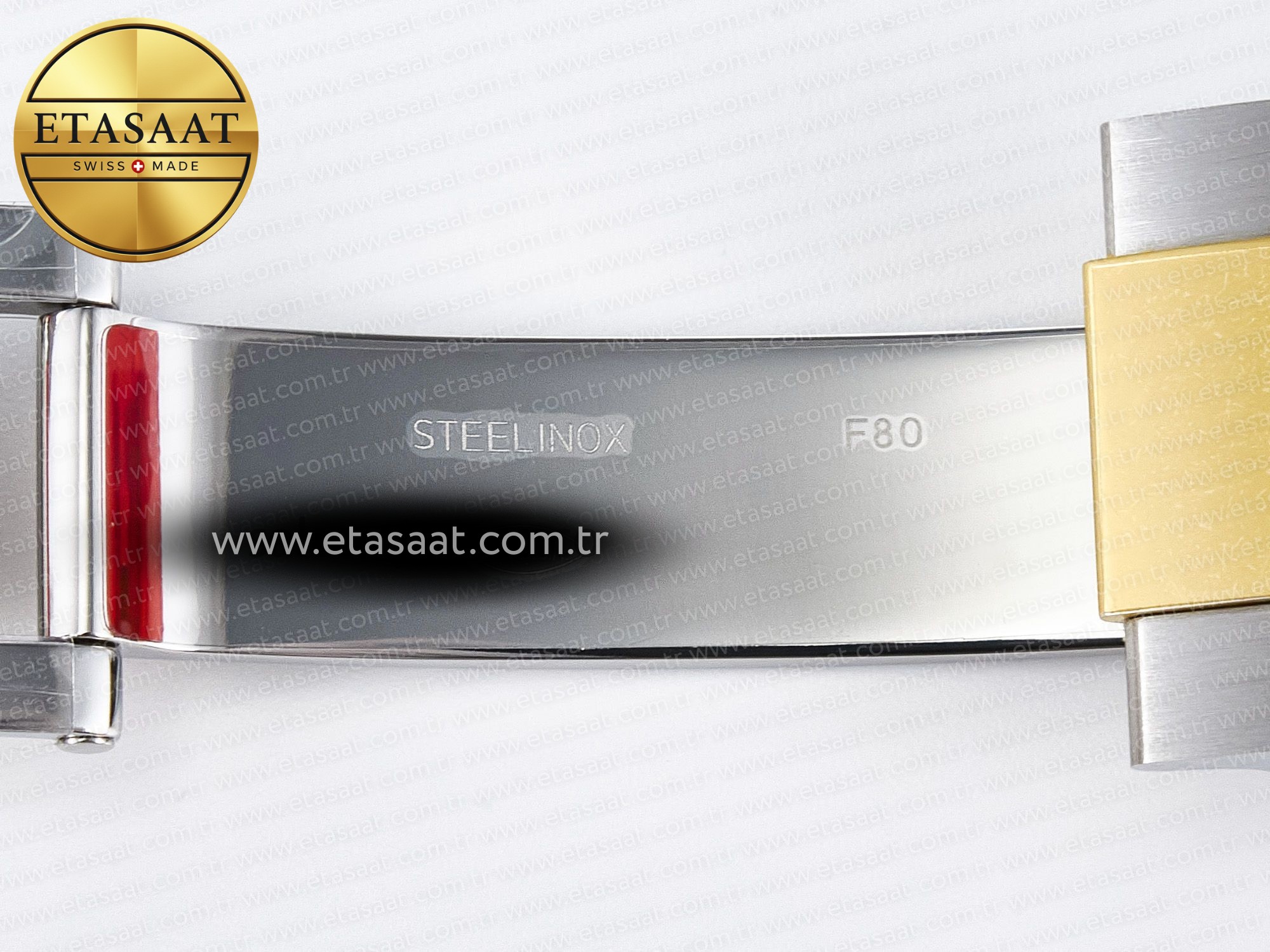 Strap: Solid 904L stainless steel bracelet, 18K yellow gold plated middle links, with perfect SEL, clasp and extension and smooth screws (The Best Rolex Bracelet EVER)