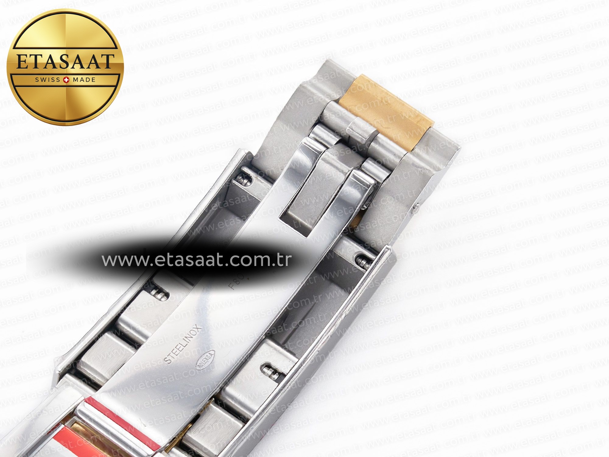 Strap: Two Tone 18K Yellow Gold Thick Plated on Solid Stainless Steel 904L with Flip Lock Deployant Buckle (ARF Best Sub Bracelet)