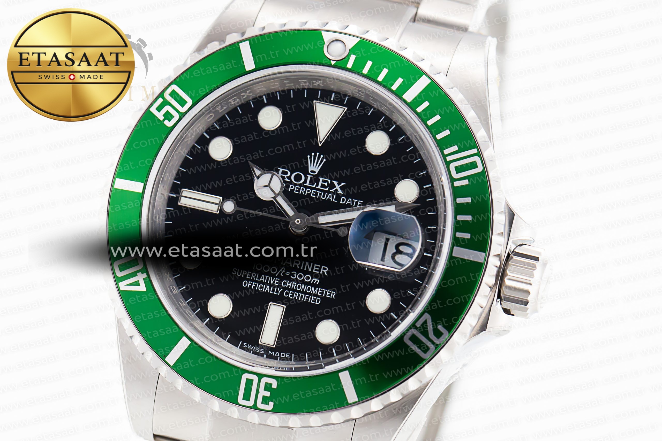 Bezel: Uni-directional rotating green metal bezel with correct font and the green color is same as genuine. The green metal bezel is pressed into rotating bezel, same crafts as genuine. No Glue!