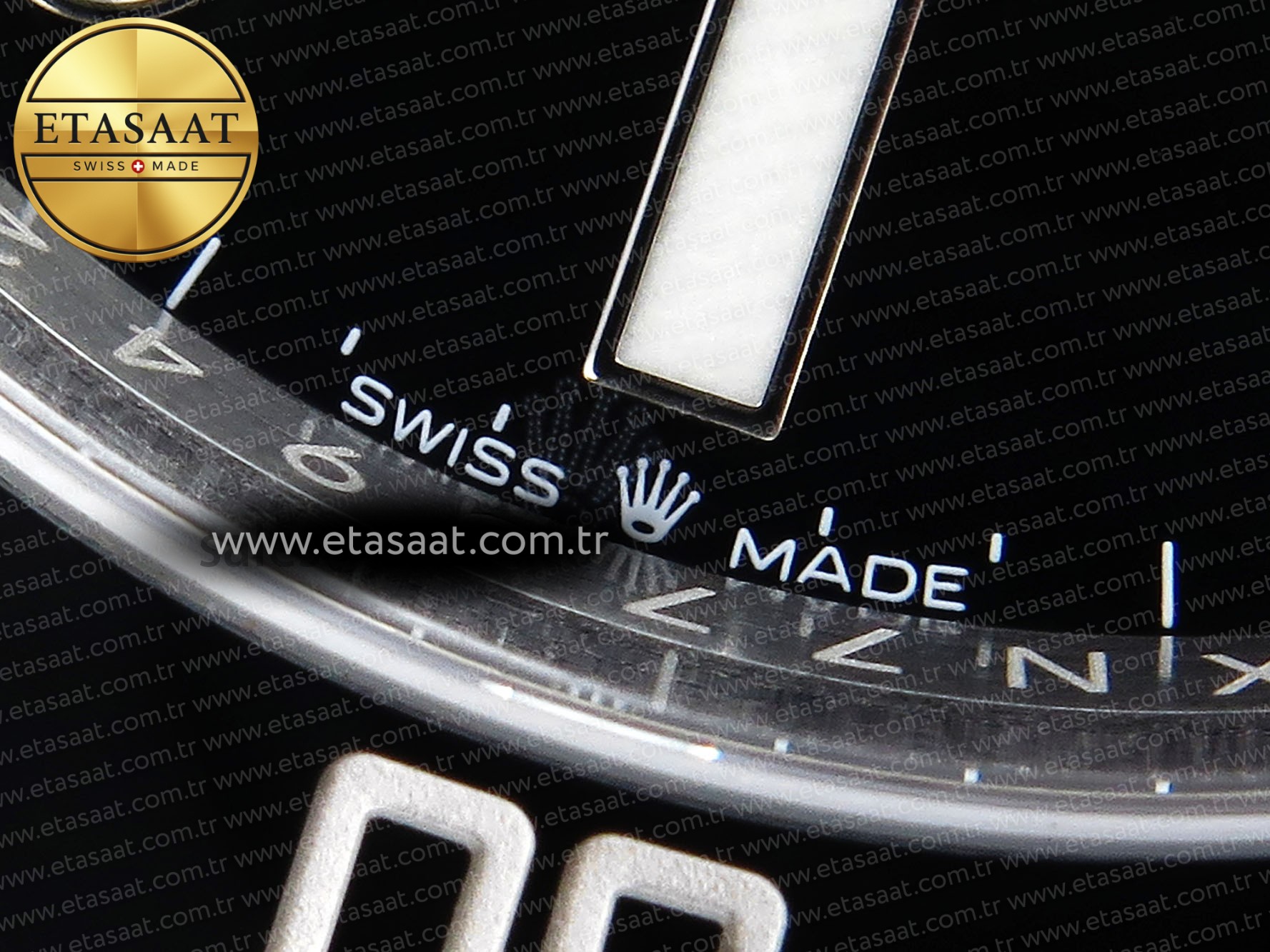 Crystal: Rounded edge scratch-proof sapphire crystal with anti-reflection coated 2.5x cyclops (Swiss standard, double-sided, same as genuine)