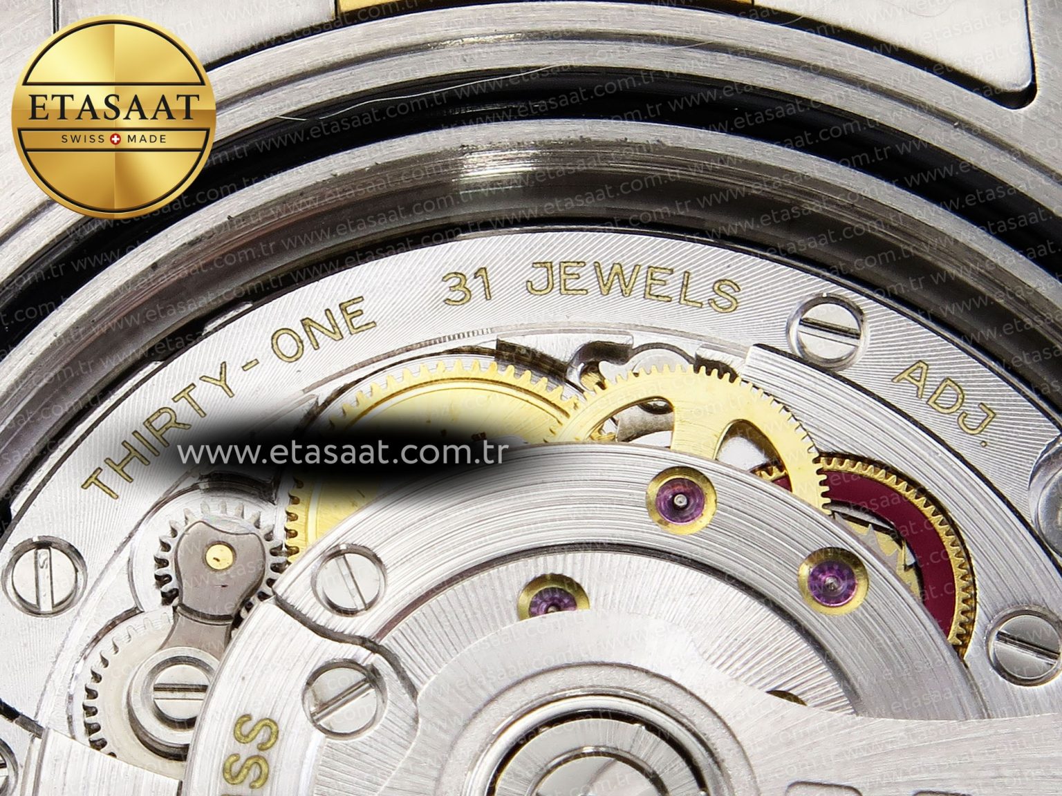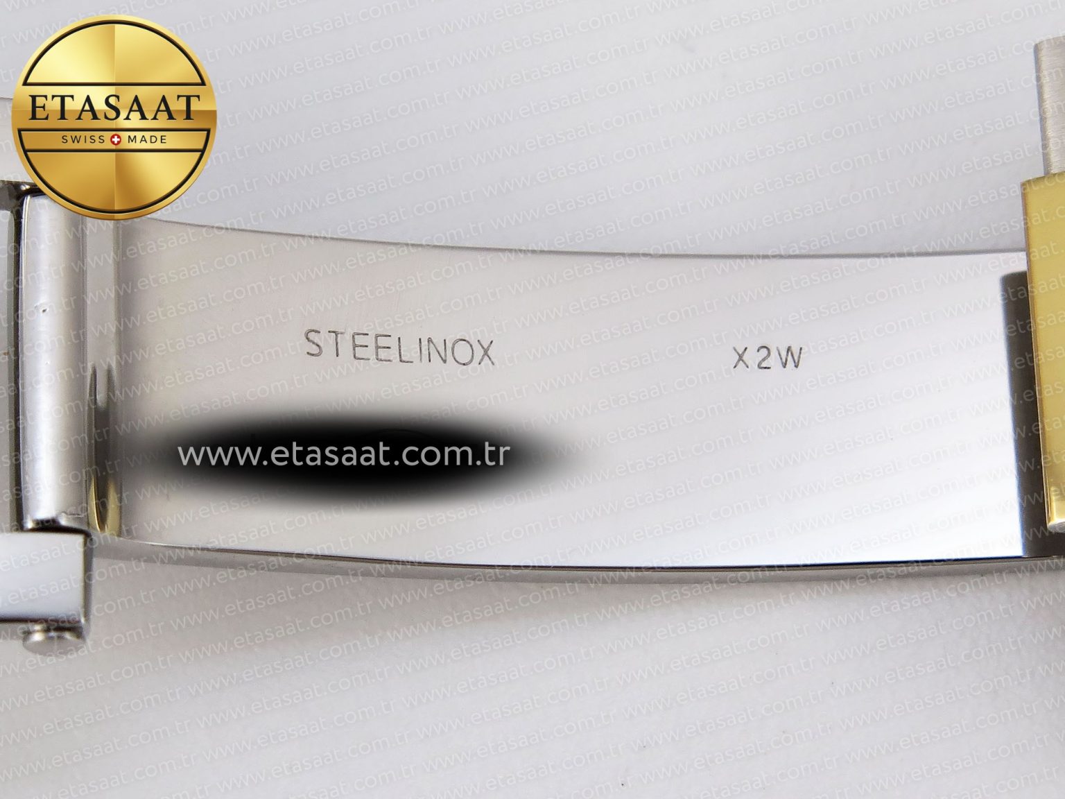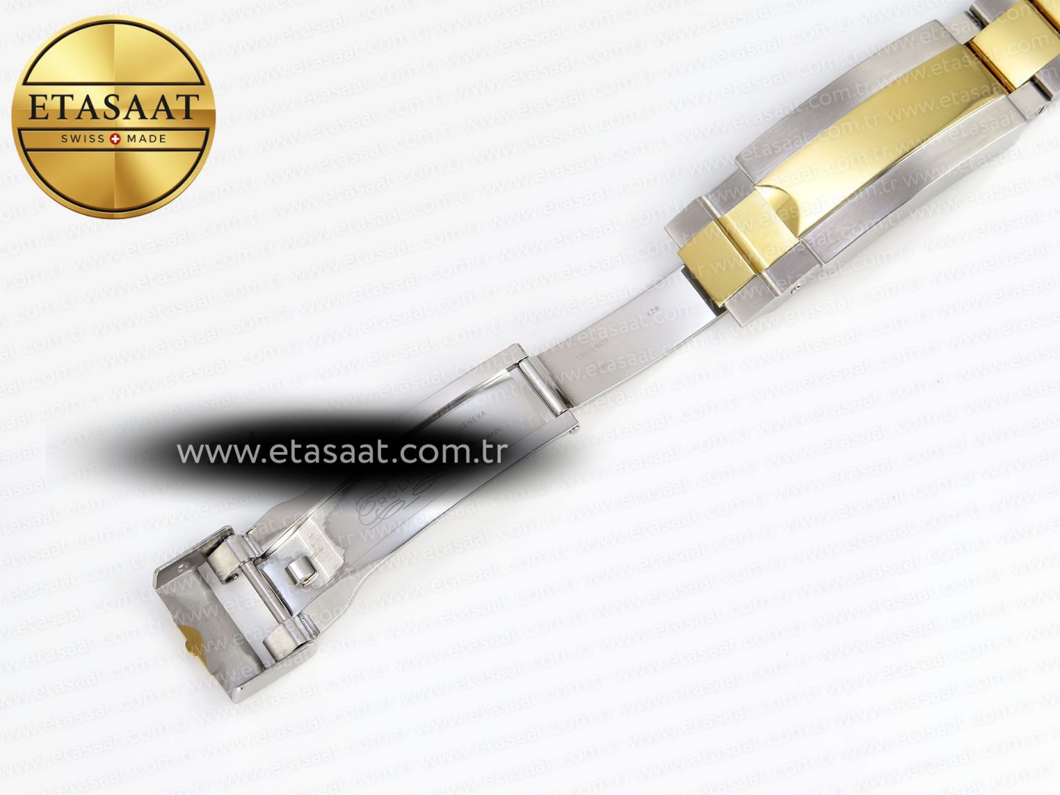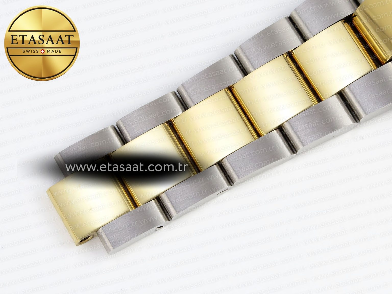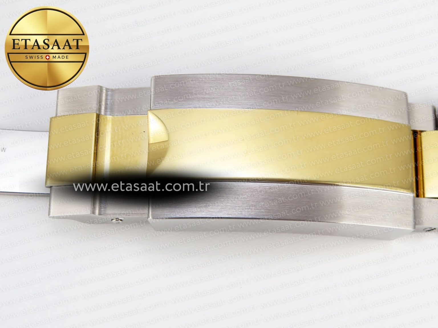 Strap: 904L stainless steel bracelet with perfect SEL, clasp and divers extension and smooth screws, 18k yellow gold plated middle links