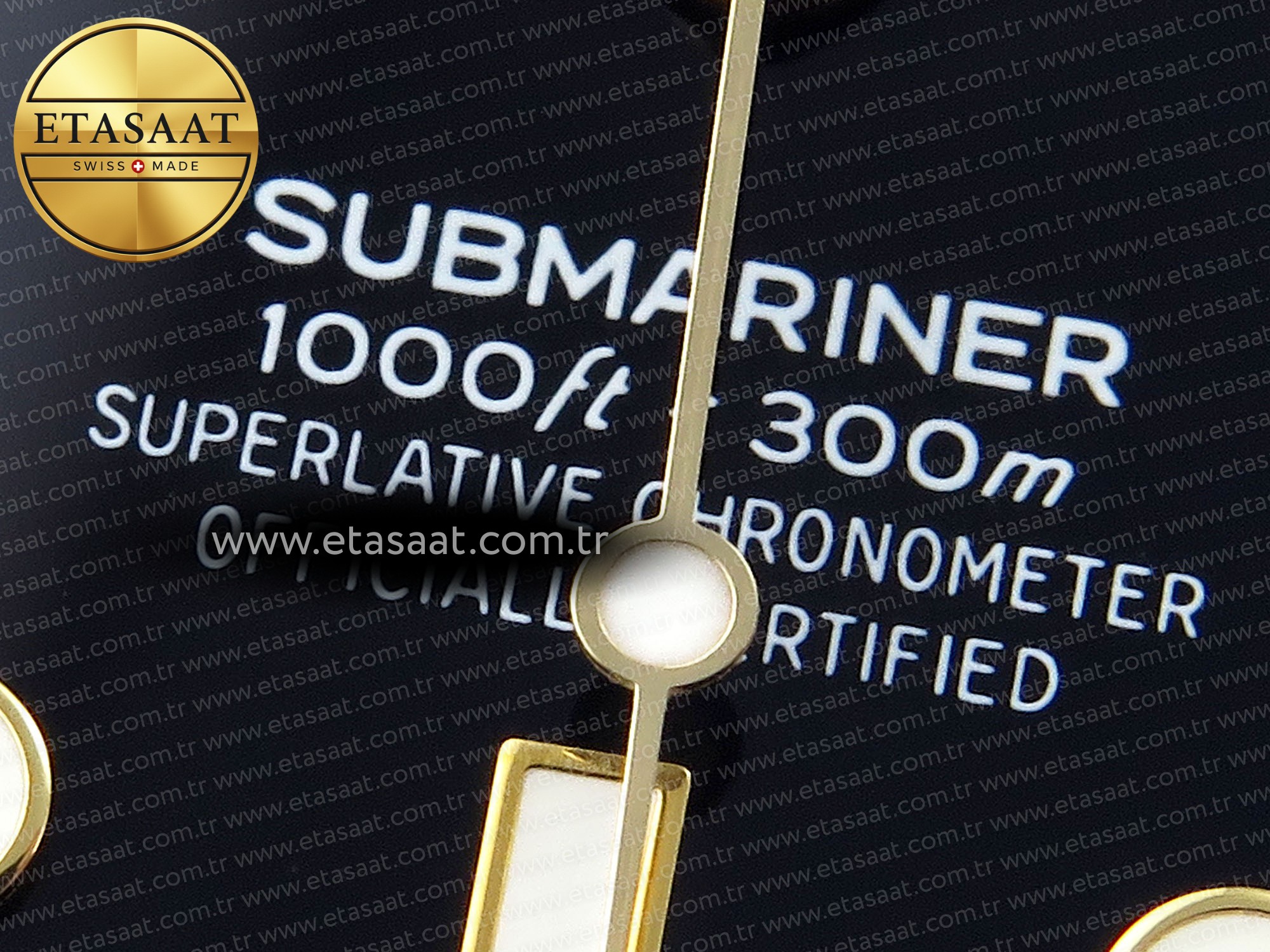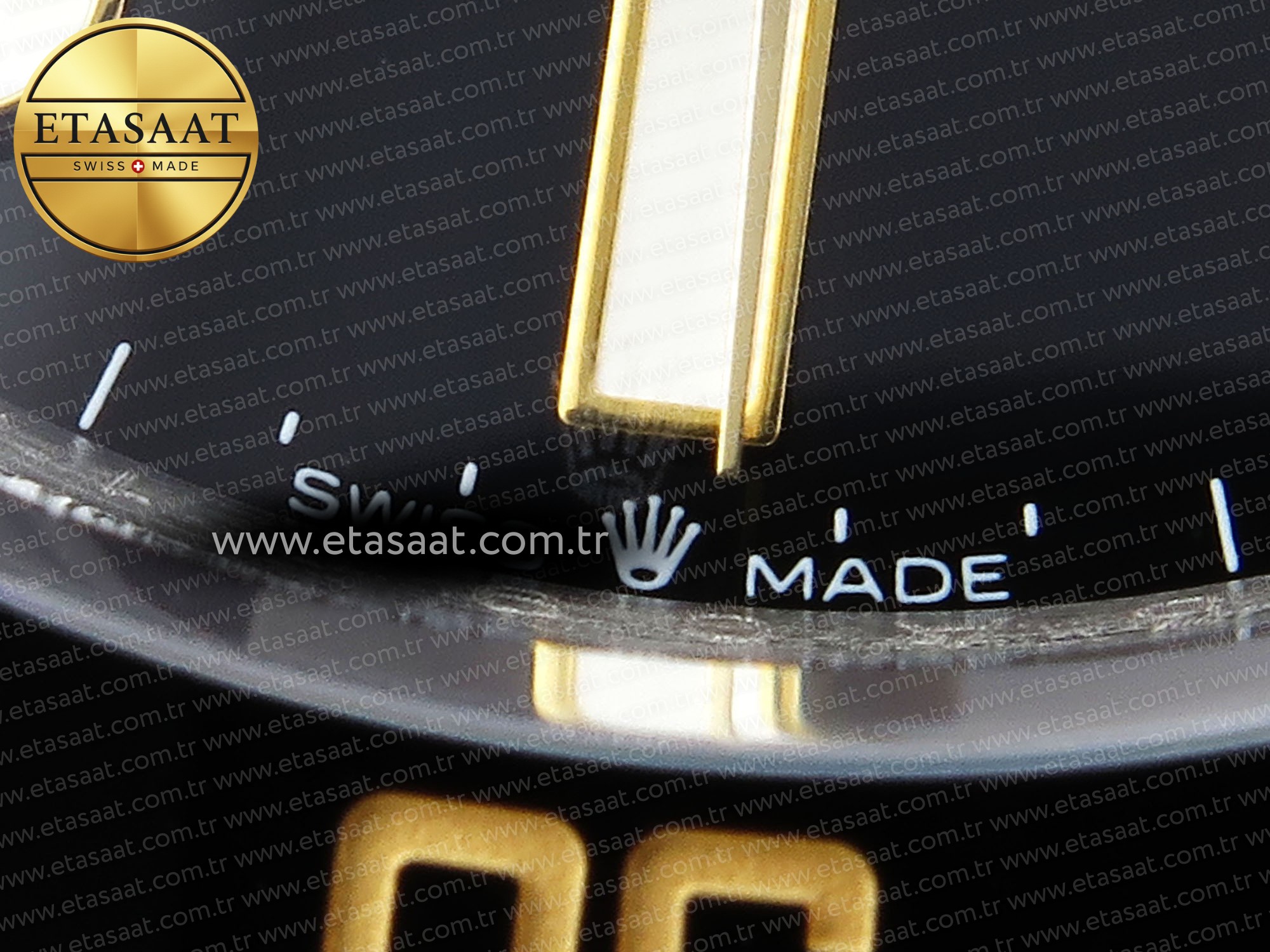 Strap: 904L stainless steel bracelet with perfect SEL, clasp and divers extension and smooth screws, 18k yellow gold plated middle links