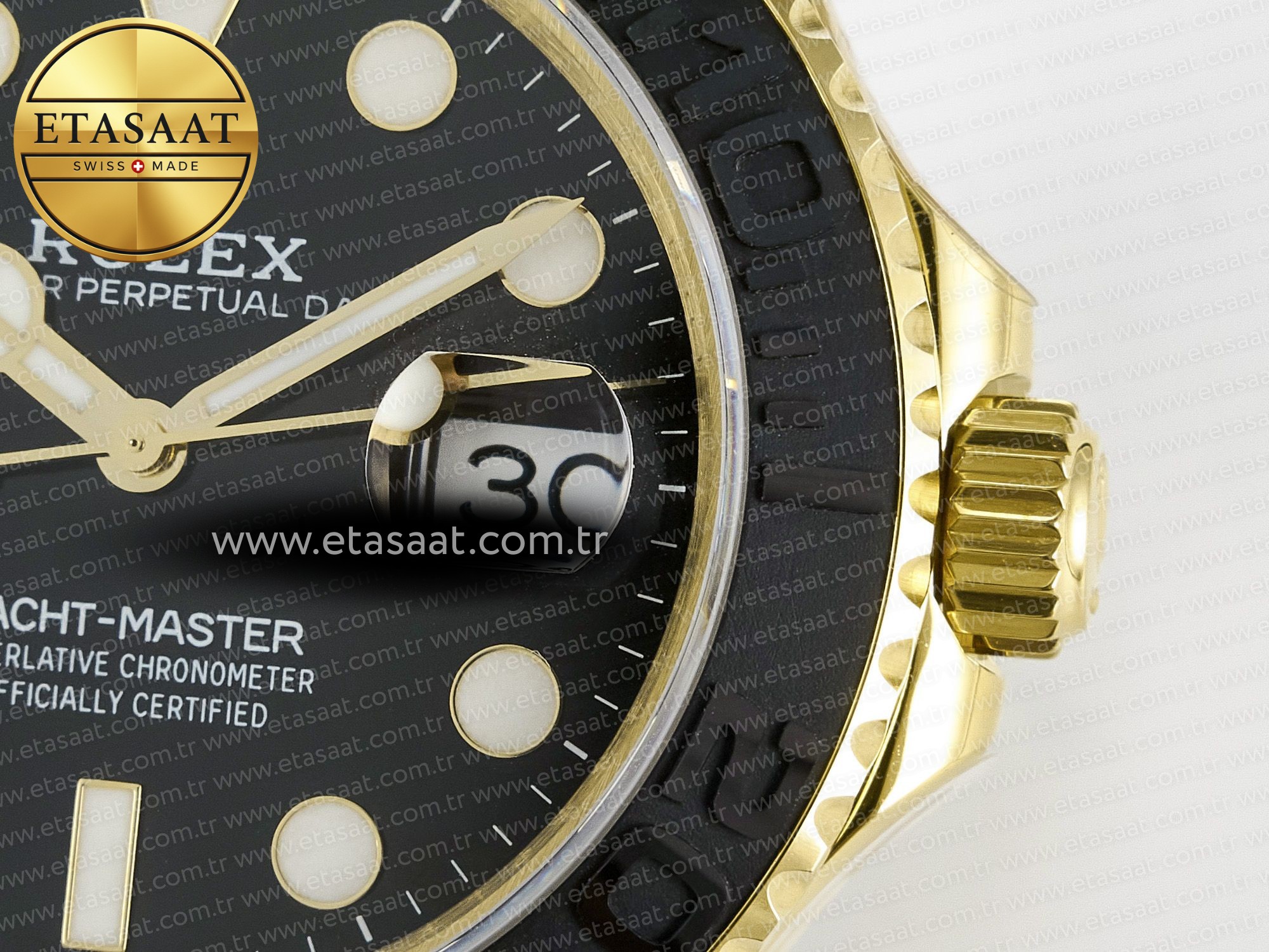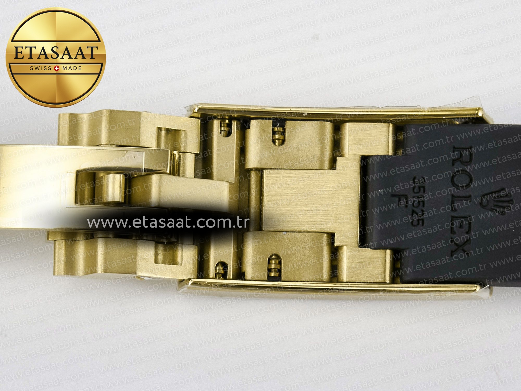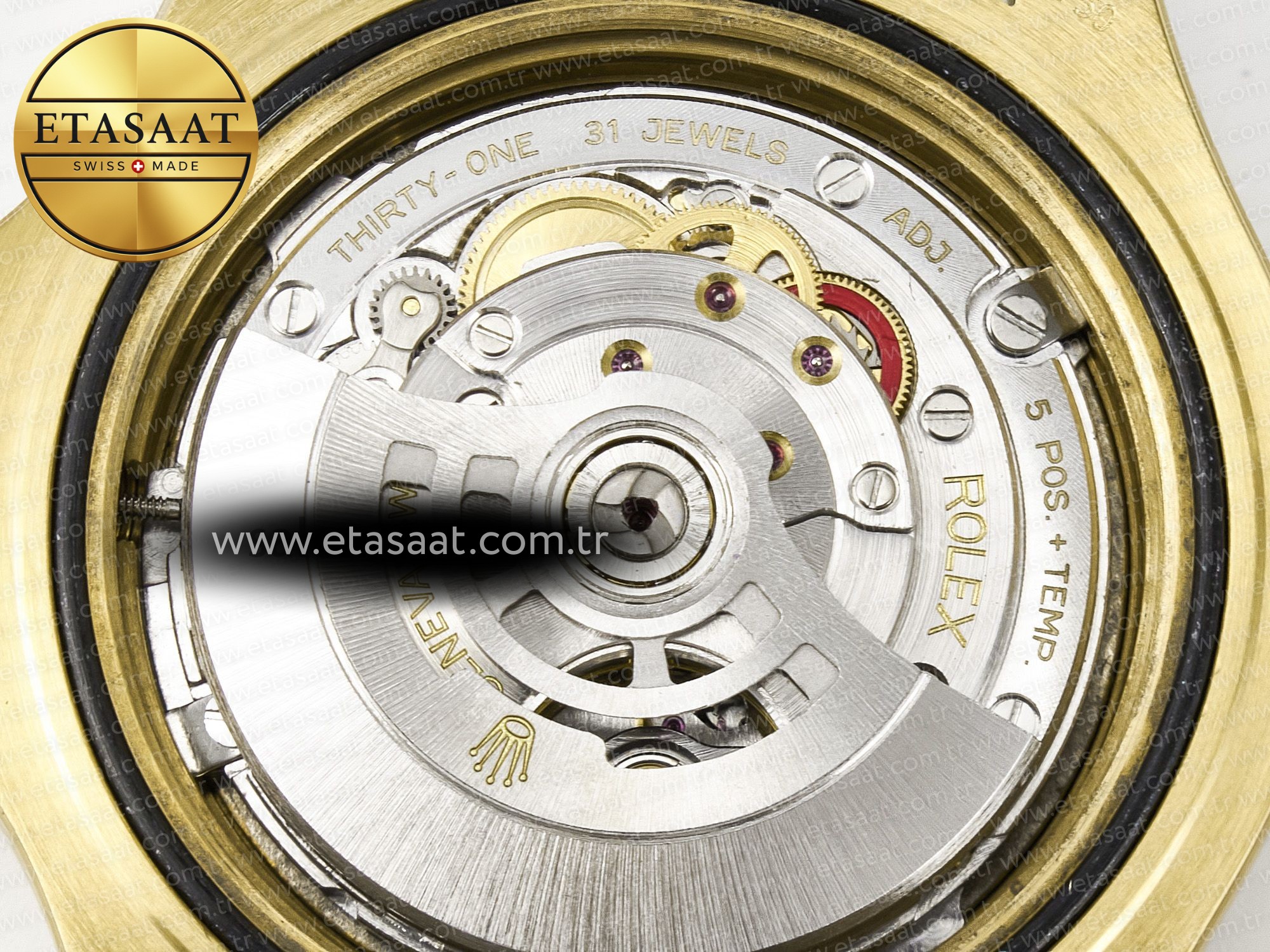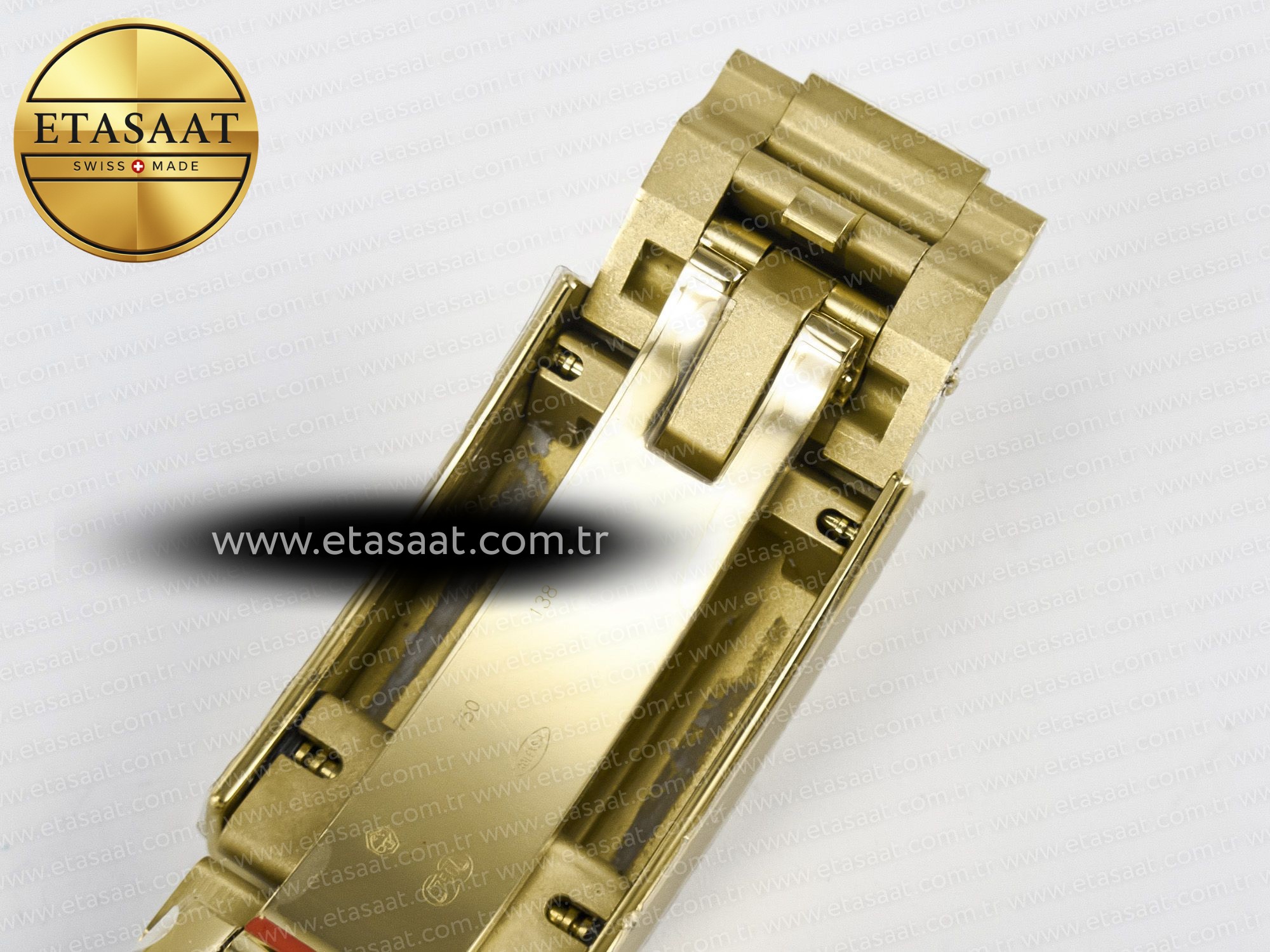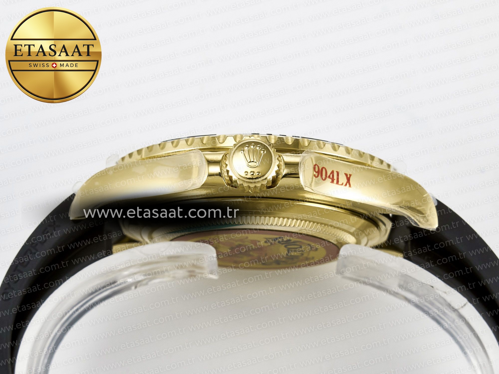 Case: 1:1 replicated 18K yellow gold plated solid 904L stainless steel and Cu-W metal case to increase watch weight to match the genuine gold watch weight